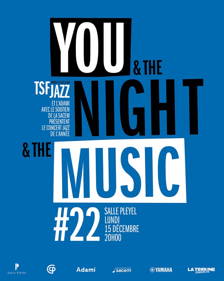 TSFJazz has adopted this title for its annual gala night, ‘You & The Night & The Music’, launched in Paris in the early 2000s as a showcase for its editorial identity and the past ‘jazz year’. The evening has established itself as a major event at the Salle Pleyel, bringing together a succession of established artists and new discoveries for nearly three hours, often accompanied by The Amazing Keystone Big Band as the ‘ceremonial orchestra’, and combining tributes (for example to Django Reinhardt), the year's favourites and revelations from the current scene.